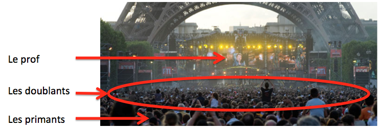 Tout ça pour dire que tenter de suivre un cours depuis le fond de l’arène est à peu près aussi efficace que de le faire avec de la musique à fond dans les oreilles. Par la suite, j’arrive donc chaque jour un peu plus tôt pour tenter de décrocher une place à l’avant (histoire que le son arrive jusqu’à moi, quoi. Je n’en suis même pas à essayer de comprendre de quoi il est question.). Au mieux, j’atteins le 5e rang. En partant du fond. En arrivant plus d’1h à l’avance. J’en conclue rapidement que quand tu rates ton concours la 1ère fois, on te remet une sorte de carte qui t’indique tous les passages secrets de la fac pour que tu puisses t’y introduire la nuit et réserver ta place.
