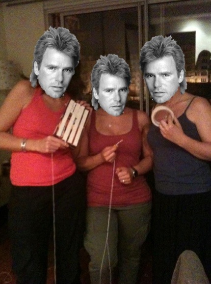 PS : En bonus, je vous présente les 3 protagonistes de cette aventure lors de leur toute dernière tentative (avec du double-face retrouvé par le mari, en photo ci-dessus, quand il est rentré).